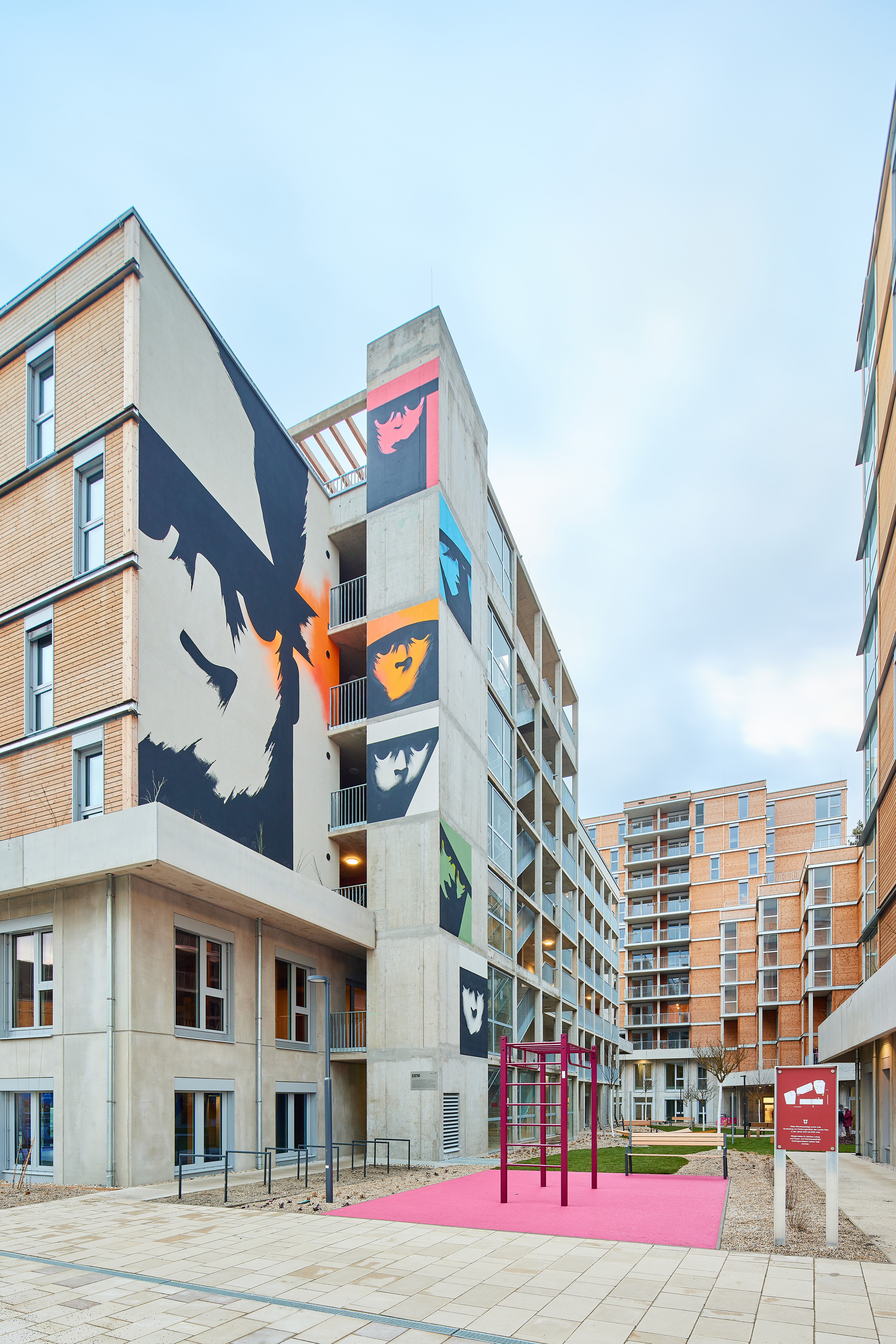 Im Zuge der Wohnungsübergaben wurden außerdem großformatige Wandgemälde sowie über 40 individuell gestaltete Wandapplikationen eröffnet, die vom Wiener Künstler Golif an den Außenfassaden realisiert wurden. Die Figuren sollen als Botschafter des Hauses verstanden werden und spiegeln die Vielfalt der Bewohner:innen wider. „Dass wir bei B.R.I.O. eine so umfassende künstlerische Gestaltung realisieren konnten, ist für uns etwas ganz Besonderes. Golifs Figuren sind bereits von weitem sichtbar, verleihen B.R.I.O. einen unverwechselbaren Wiedererkennungswert und schaffen zugleich eine verbindende Identität für die neuen Bewohner:innen“, erklärt Fichta.